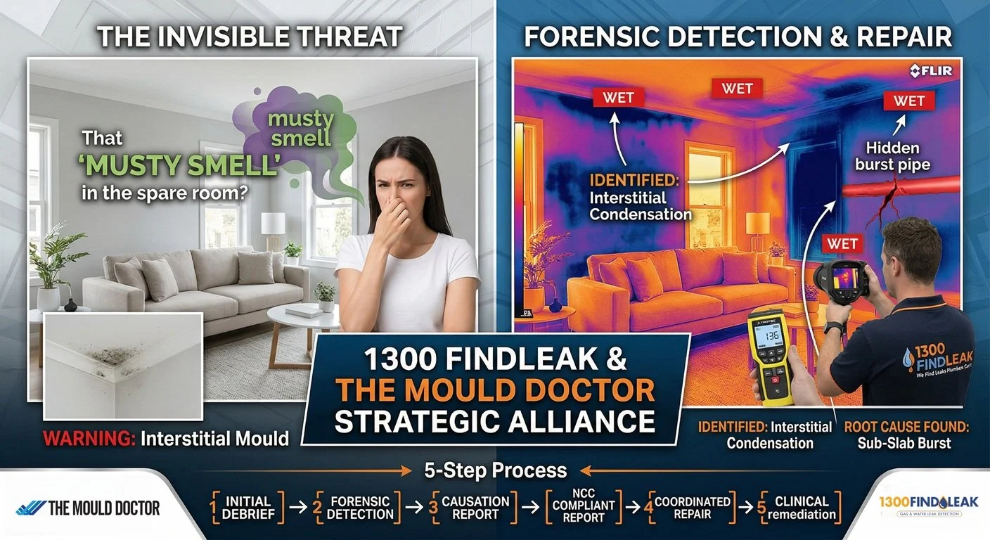 In the complex landscape of Australian building maintenance, water ingress and fungal growth represent two of the most significant threats to property structural integrity and occupant health. To provide a definitive solution to these interconnected issues, 1300 FINDLEAK, Australia’s premier forensic leak detection specialist, and The Mould Doctor, the nation’s leader in mould remediation, have formed a Strategic Alliance.